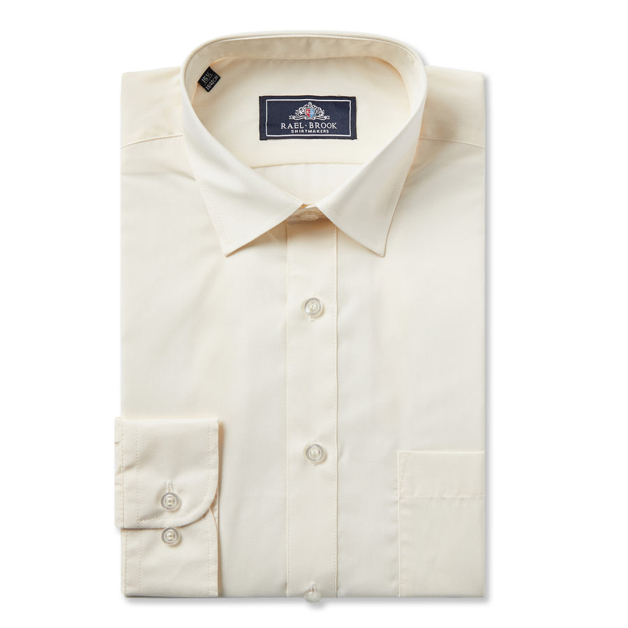 Cream standard collar dress shirt, single cuff and plain front. Ideal for wearing with a tweed crail jacket.