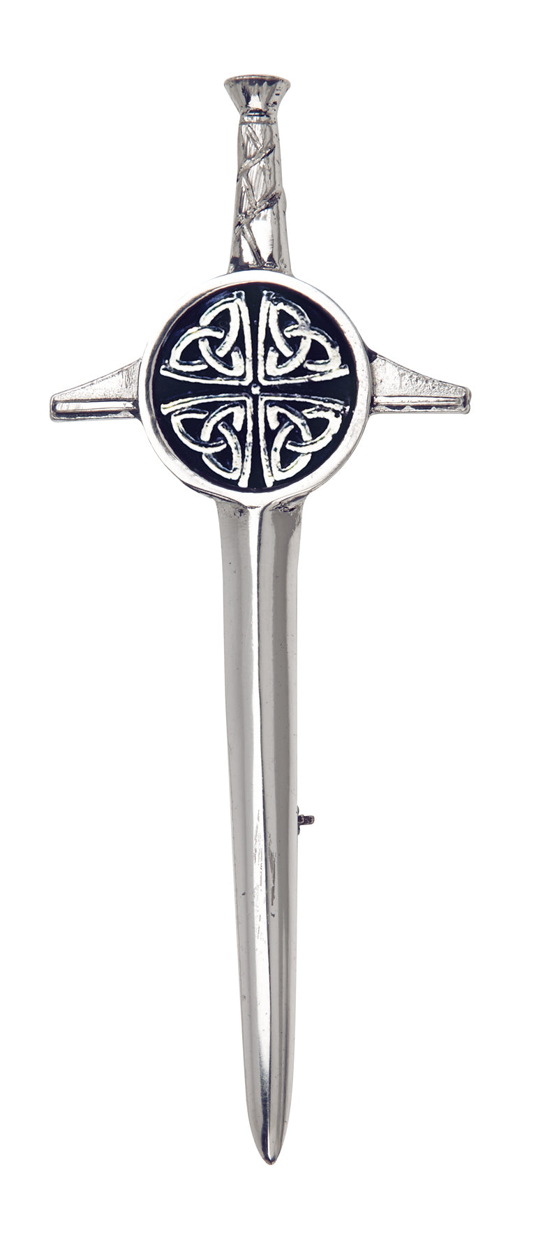 Pewter kilt pin with Celtic interweave design on front plate - available in polished finish only