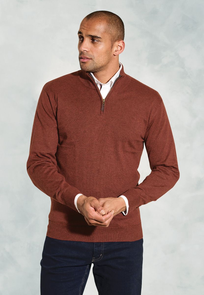Stay warm and look sharp in this cotton ThermoLite® blend zip neck jumper. This versatile piece is perfect for layering, offering both exceptional comfort and stylish design