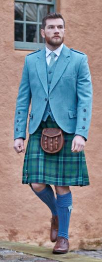 Lovat blue crail jacket and waistcoat made from 100% pure new wool herringbone fabric.