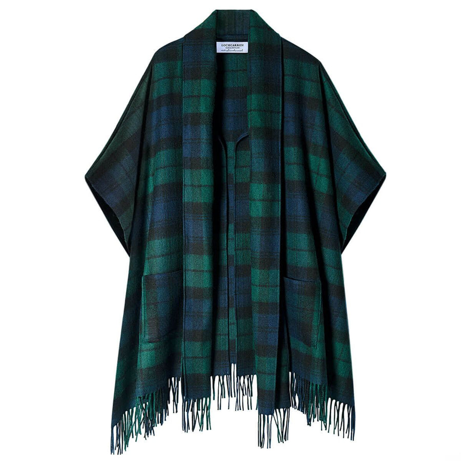 The Robyn Black Watch Modern Tartan Lambswool Jacket is a navy and green based tartan with black overchecks and is the perfect complement to any wardrobe. It is the ultimate Winter-Spring piece that is easy to wear, draping delicately over the shoulders to give a classic and elegant look. Featuring two pockets and a small scarf that can be wrapped over the shoulders or draped in the front, this truly versatile garment can be worn over jumpers or coats. Available as one size fits all.