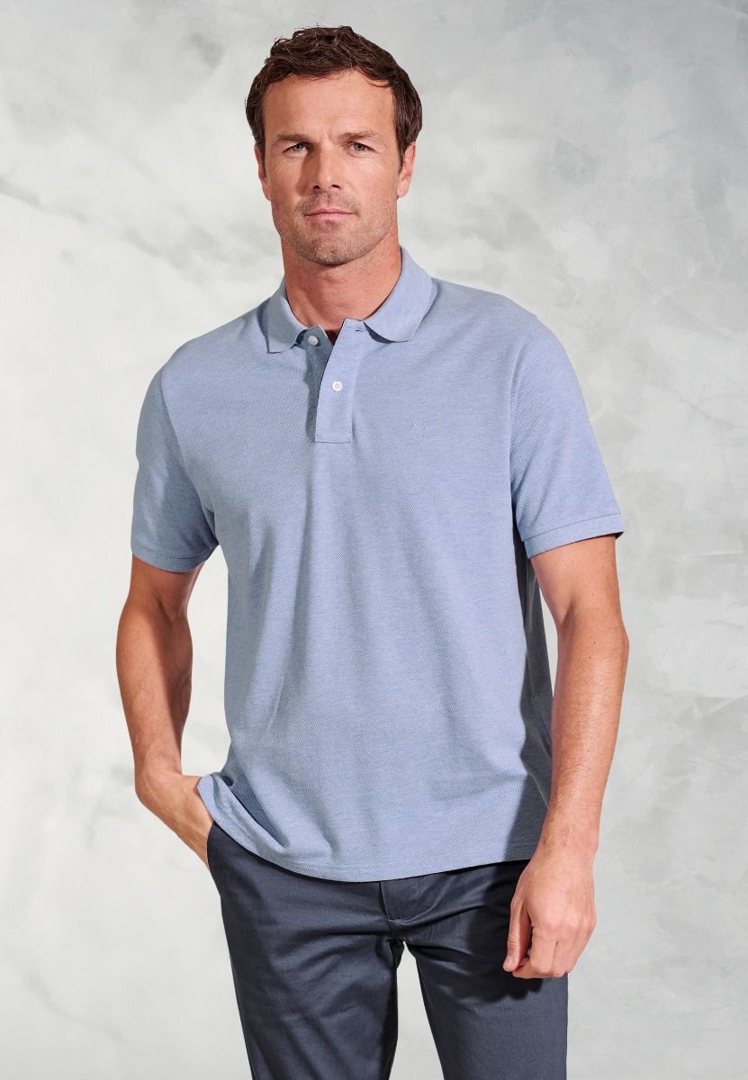 Shirt: Soft handle. Polo collar with contrast stripe. Ribbed collar and cuffs. Two button placket. Side vents. Machine washable.