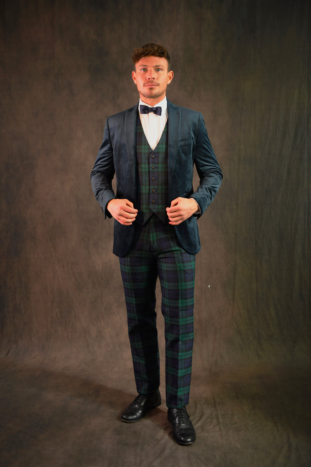 Anderson Kilts hold stock of poly-viscose tartan trousers and waistcoats in 3 tartans - Black Watch, Spirit of Scotland and Grey Granite